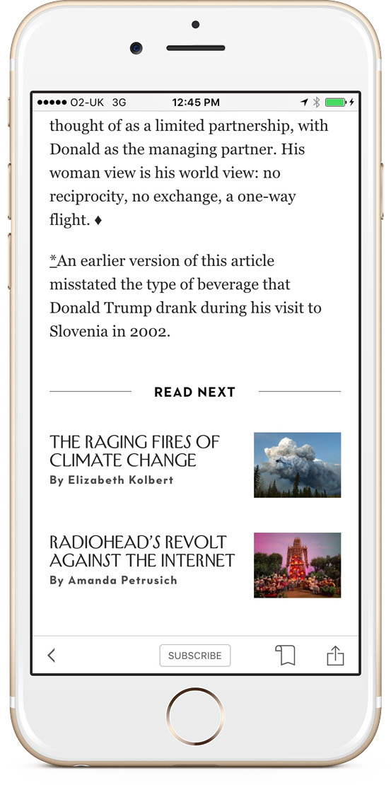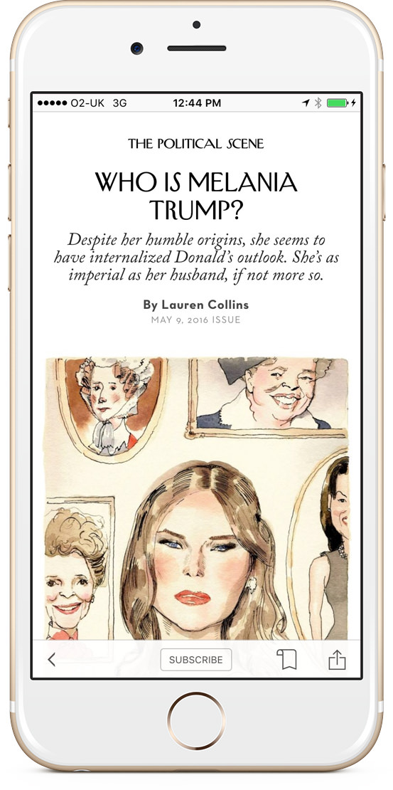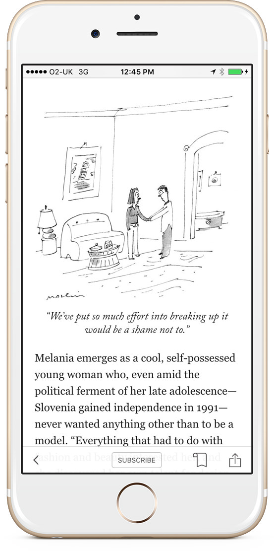 Show Project InfoHide Project Info Paloma Rincón Amnesty International: Freedom of expression Oh, grassy glades! oh, ever vernal endless landscapes in the soul; in ye,—though long parched by the dead drought of the earthy life,—in ye, men yet may roll, like young horses in new morning clover; and for some few fleeting moments, feel the cool dew of the life immortal on them. Client: Heart of the Arctic Website: foryourconsideration.ca Date: 2015-06-10 Services: Creative, Ideation, Design, Development The New Yorker Magazine Application for IOS Login Screens Article Screens